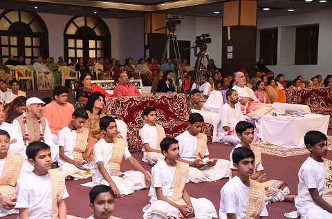 Gita Pravachan began on day 1 with the kindling of the auspicious lamp by Pujya Bhaishri, Swami Anubhavanand Saraswati ji and the chief host of Patotsav, Shri Vijaybhai and Shrimati Gauriben Goyal. Below are a few enlightenining topics shared by Swami Anubhavandand Saraswatiji in his discourse.