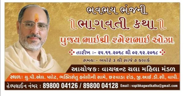 Contact: +91 89800 04126/ +91 89800 04128; Email: vapibhagwatkatha@gmail.com
