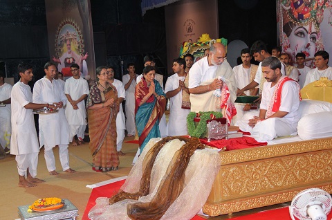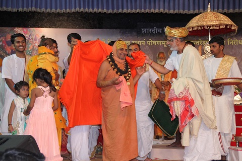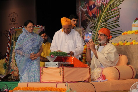 Shri Raghumuniji of Mahaakhada honoured Pujya Bhaishri on the day.