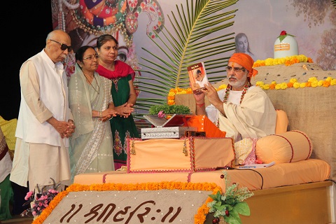 Pujya Bhaishri honoured both the sponsors and the editors, Shri Ghanshyambhai Mehta and Tina Chandarana.