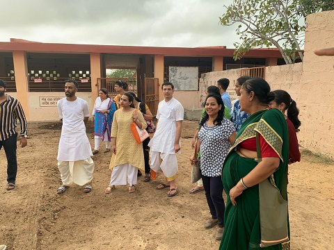The students’ first day started with an introduction to the Sādhana course, each of them being given a Sādhana kit, which included essentials such a workbook, notebook, pen, and a prayer mat. This was followed by their first Vedic workshop – conducted by Shri Bharatbhai Silu – where they learned the Ganesh mantra. The students later learned about the five Prānas (vital principles) of Sanātan Dharma in the Sanātan study class. They finished their day with an afternoon trip to the Kirti Mandir, the birthplace of Mahatma Gandhi, and the Sudāmā Mandir.