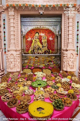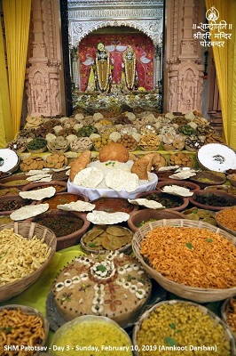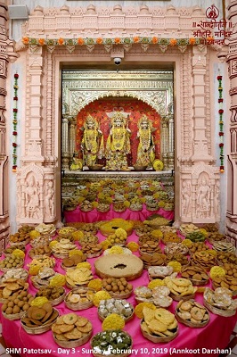 On day 3, Shri Hari Mandir Patotsav celebrations continue with pooja and worship of deities, medical camps, lectures by Sandipani scholars, cultural programmes and discourse on Gitaji.